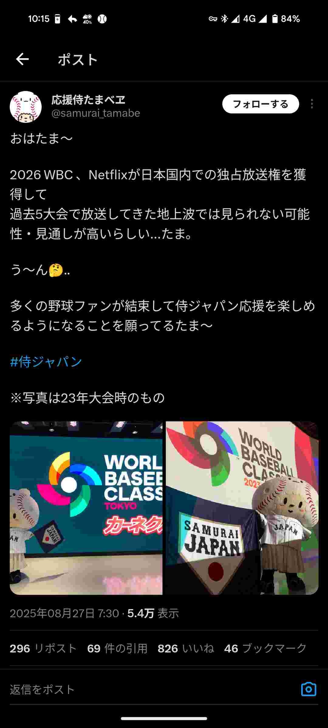 多くの野球ファンが結束して侍ジャパン応援を楽しめるようになることを願ってるたま~