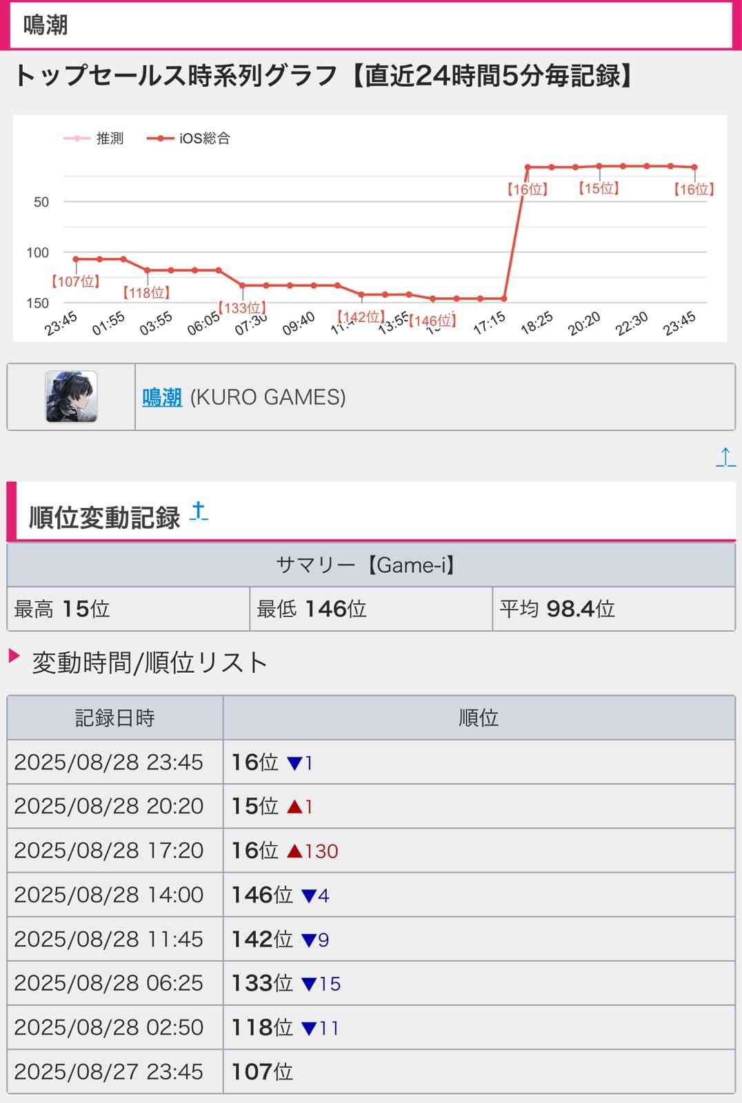 鳴潮さん、新キャラ実装&人権キャラ復刻でセルラン大爆死してしまう