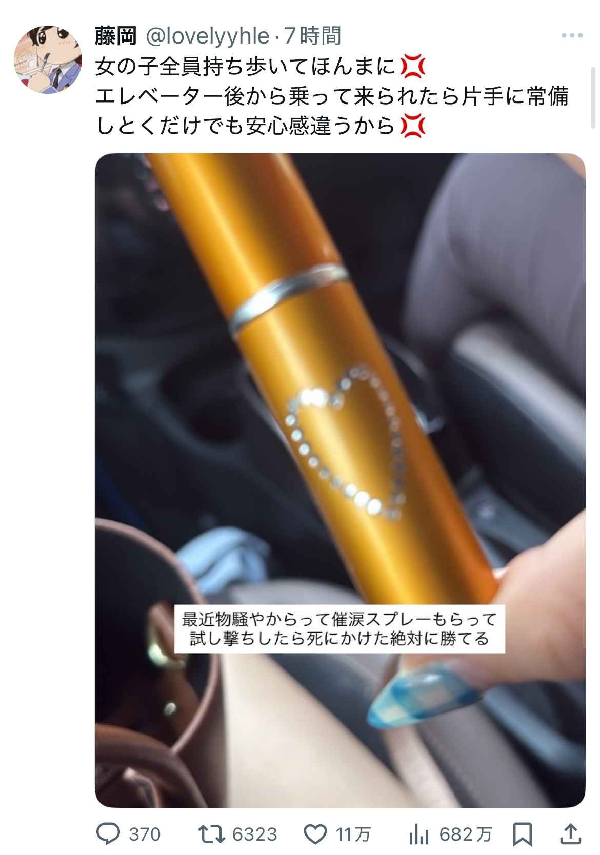 女の子「みんな、催涙スプレー装備しよ!」11万いいね