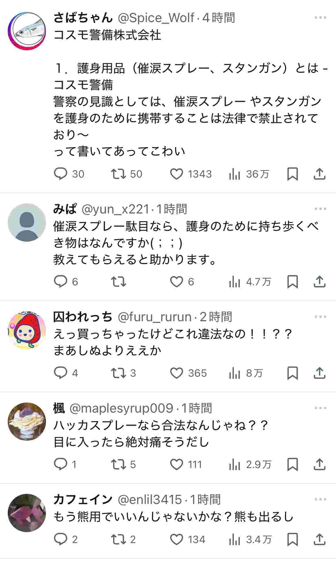 - クマ用のスプレー持ち歩いてても合法よな?