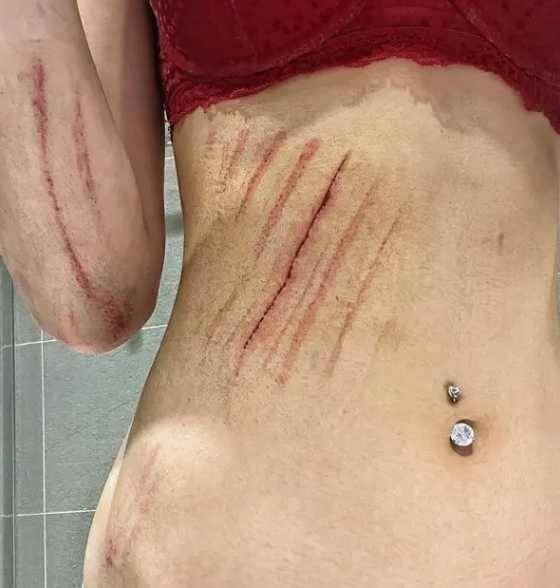 「反応が間に合わず、転んで怪我をした。本当に痛かった。その男性は足早に走っていった。本当に腹が立ったし、傷ついたし、お腹が見える服を着ていたし……すごく腹が立った!傷跡が残るのが本当に怖い。」