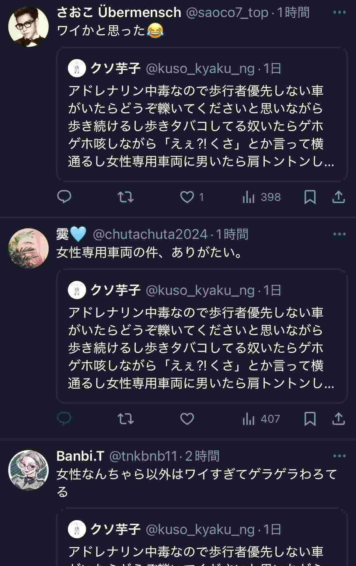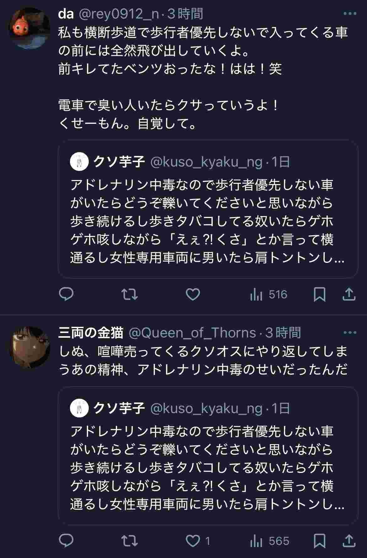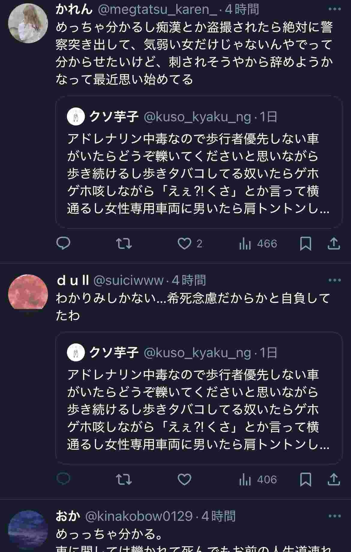 まんさん「アドレナリン中毒だからマナー悪い奴らに声かけていってる。いつ殺されるかわからん」