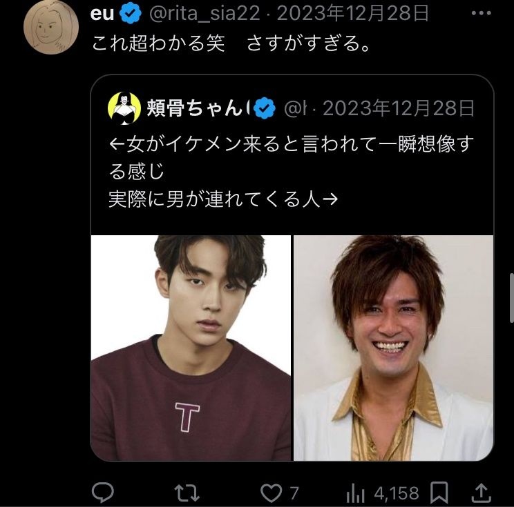 ワイも友達で一番イケメンなやつは右みたいな感じや
