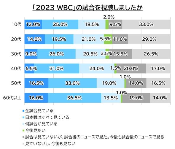 【WBC】男性500人に聞いた「有料でも観る? 観ない?」20代41% 70代以上5%www