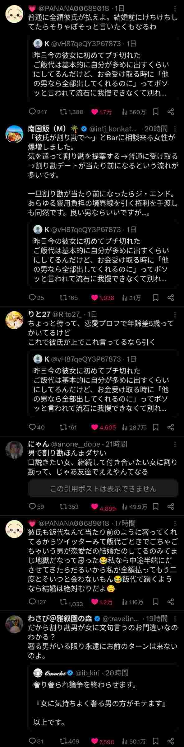 - でも弱男は優しいから奢るの当たり前なんだが
