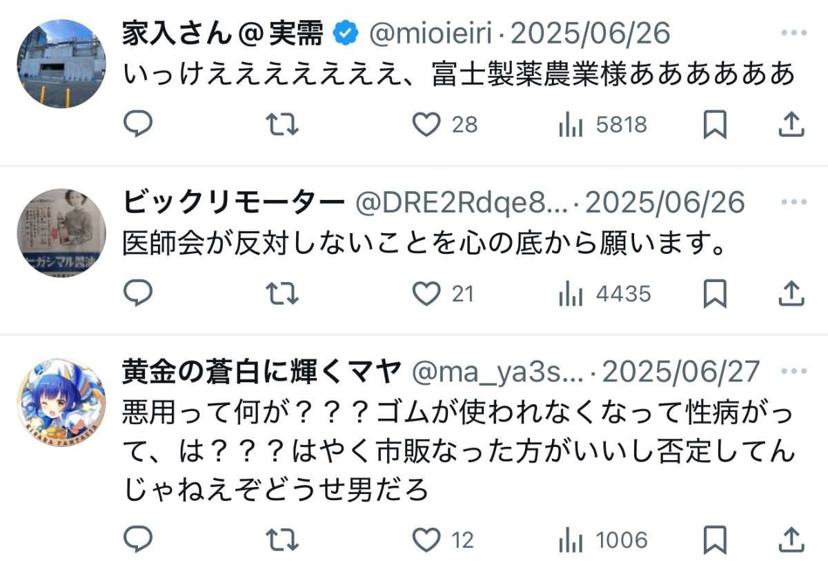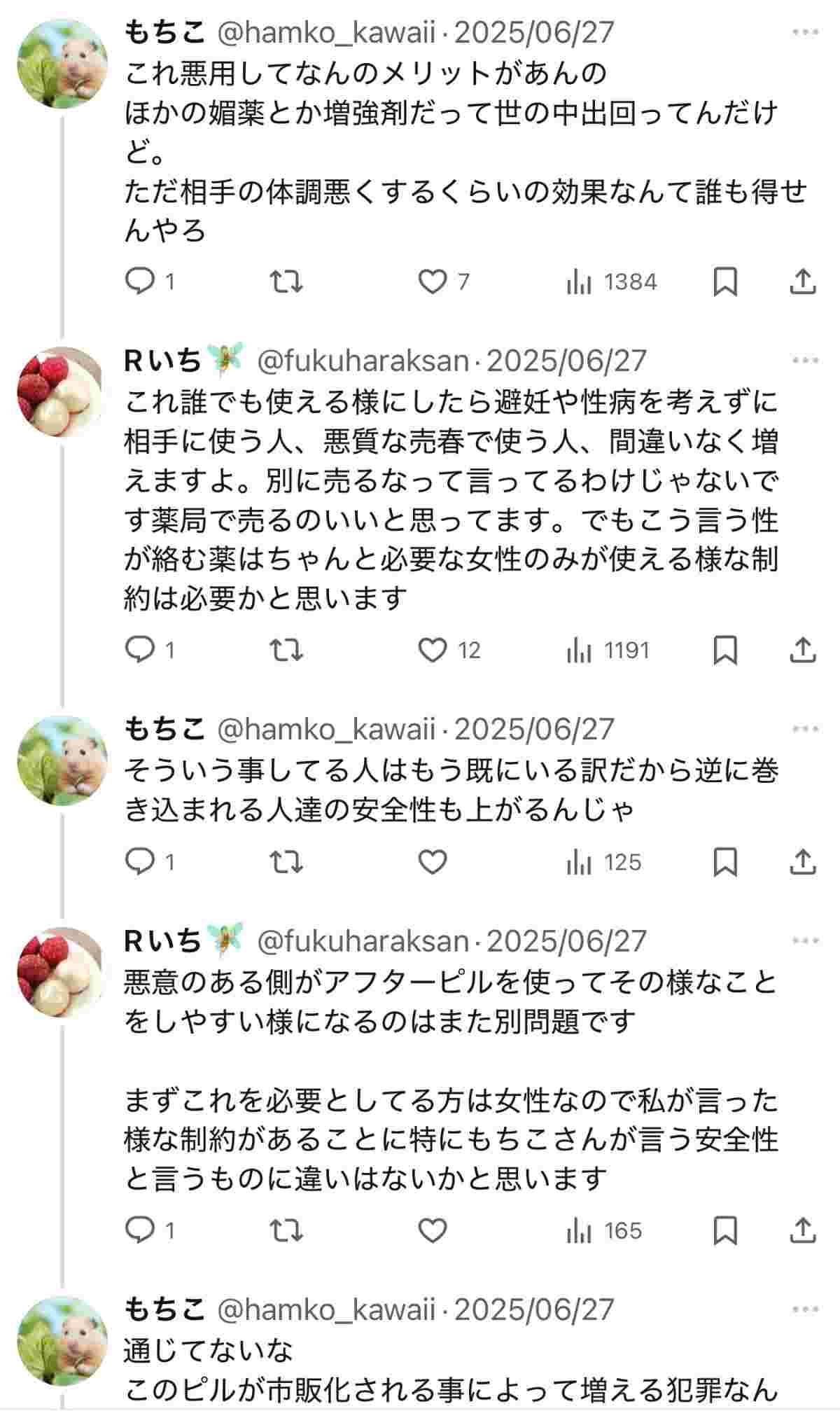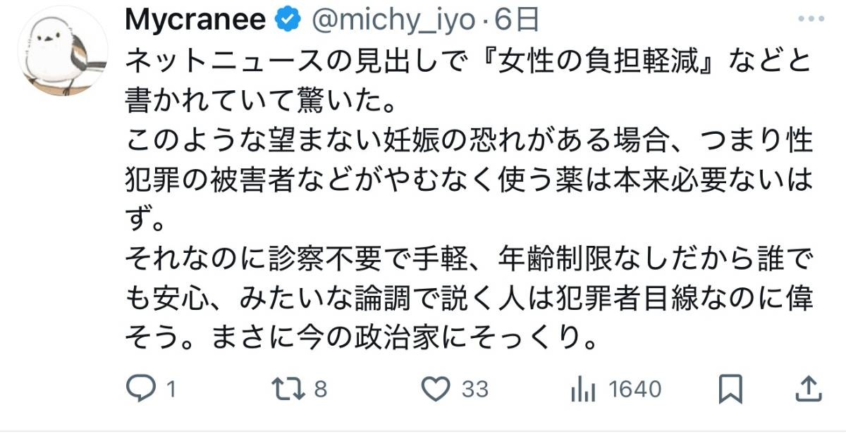 - 悪用の点では中国製アフターピルがすでに出回ってるから