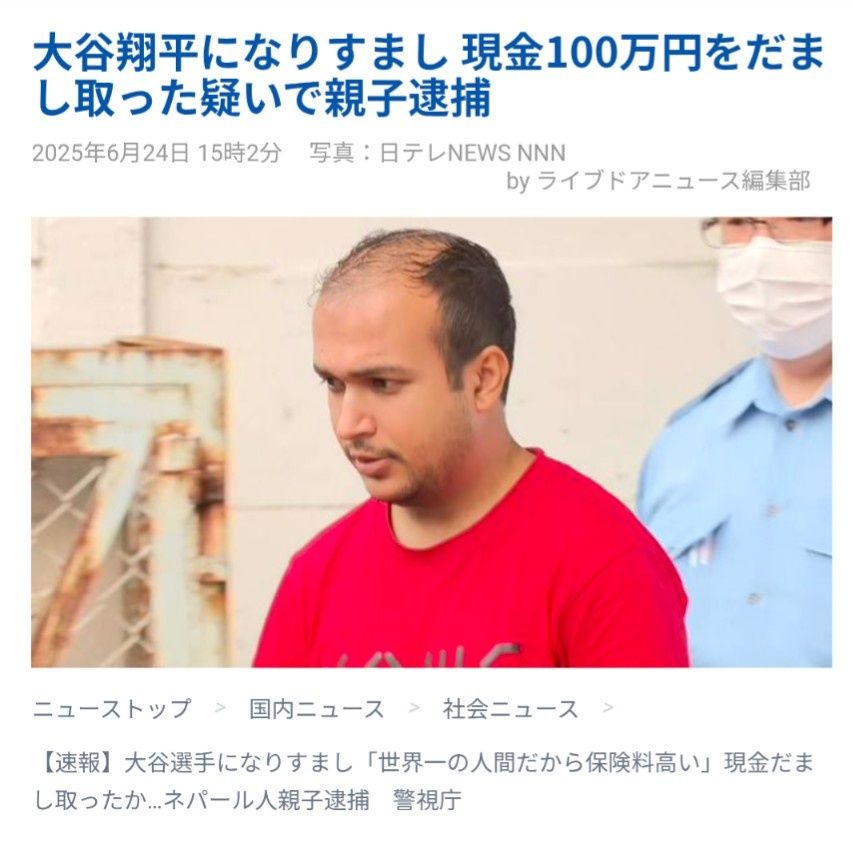 ネパール人(26)「ハーイ!大谷翔平デース!100万円クダサーイ!」日本人女性「大谷!?いいですよ!」←摘発