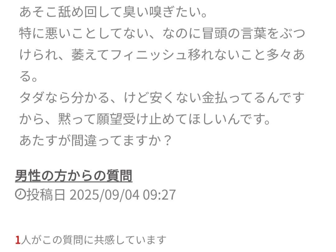 20 名前:ここからは表現の自由でイカせていただきます 投稿日時:2025/09/08(月) 03:43:32.970 ID:D3RlbFLWt