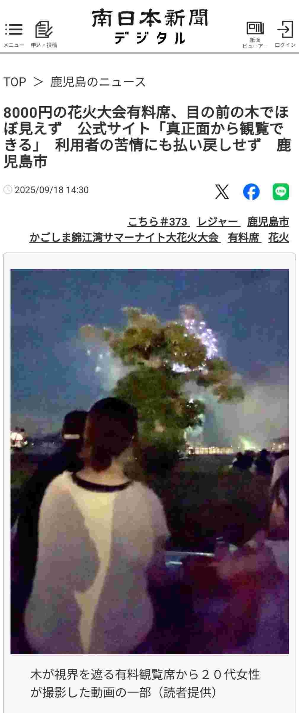 20代女性「花火大会の有料席(8000円)を買ったのに、全然見えなかった😭」