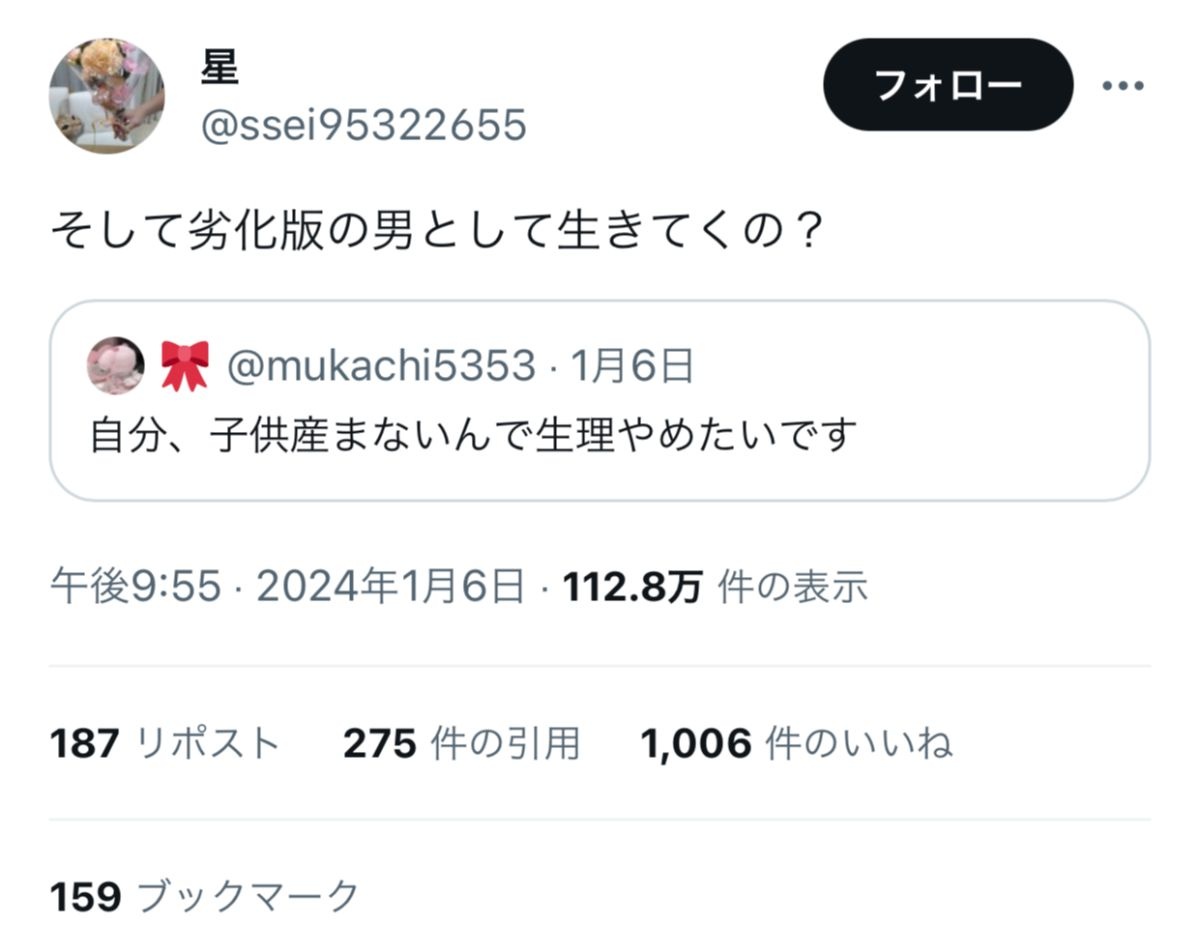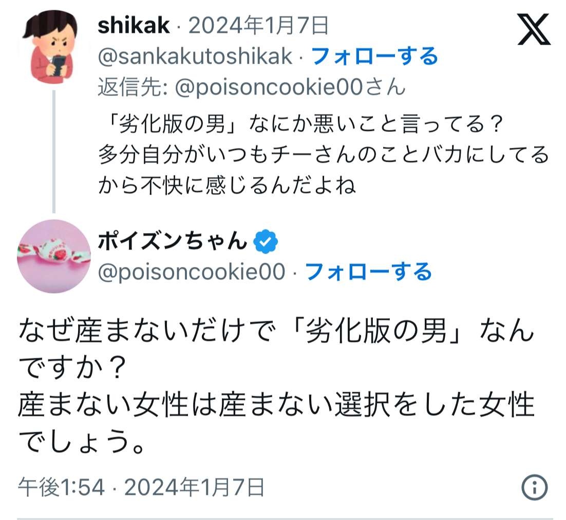 強者女性「産まない女は劣化版の男」弱者女性「チギュアアアアアアアア!!!」