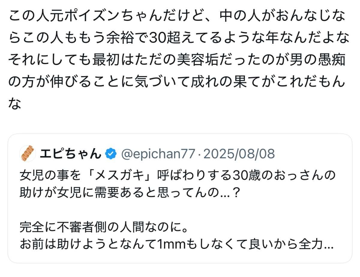 31 名前:ここからは表現の自由でイカせていただきます 投稿日時:2025/09/18(木) 19:49:39.847 ID:BxSJn/iMx