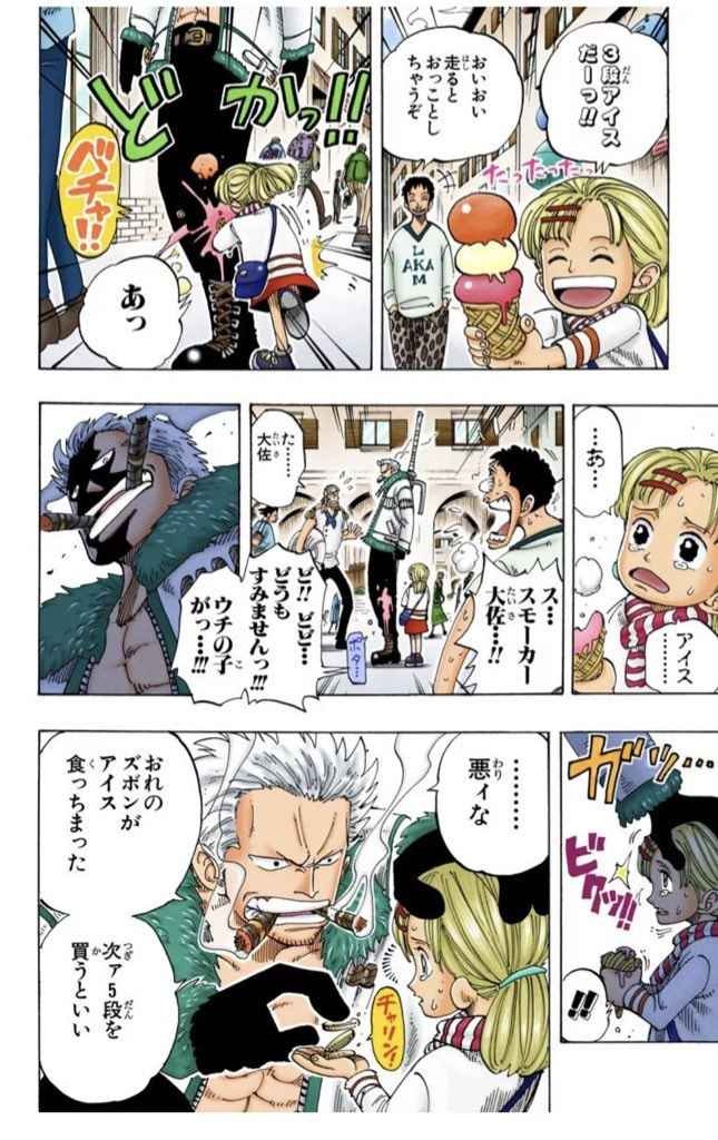 スモーカー「わりぃな、俺のズボンがアイスを食っちまった。今度は7段を買うといい」