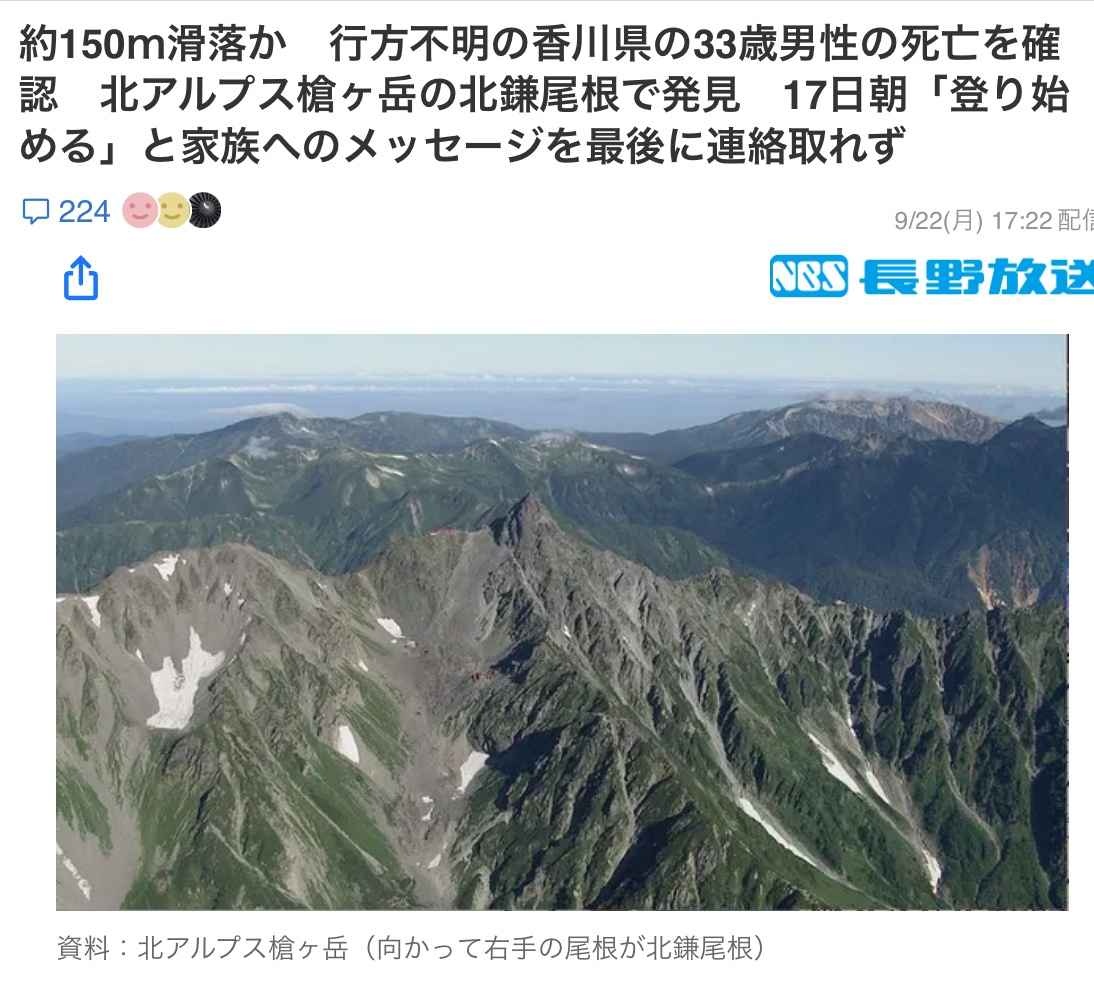 妻子持ちイケメン消防士さん、北アルプス槍ヶ岳の北鎌尾根で150m滑落して死亡
