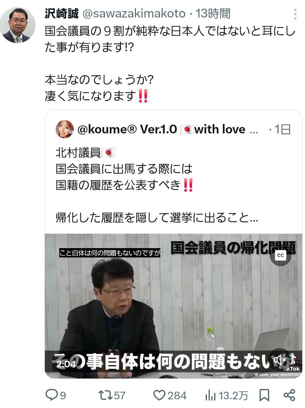 - 国会議員の9割は日本人ではないと言い出してしまった模様
