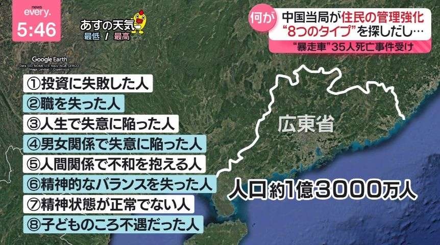 「四無」が「配偶者、子女、仕事または安定的な収入、不動産などの資産がない」、「五失が投資の失敗、生活への失意、関係の調和喪失、心理失調、精神異常」をそれぞれ指すと伝えた。記事は、中国SNS上では13日ごろより、同市の一部住宅地・団地で「四無五失」層の人数を把握する動きが急速に拡散していると紹介。