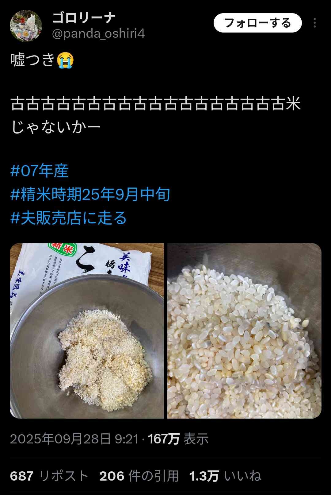 女さん「ギャオオオン!新米に備蓄米が混ざってるのおおお!」