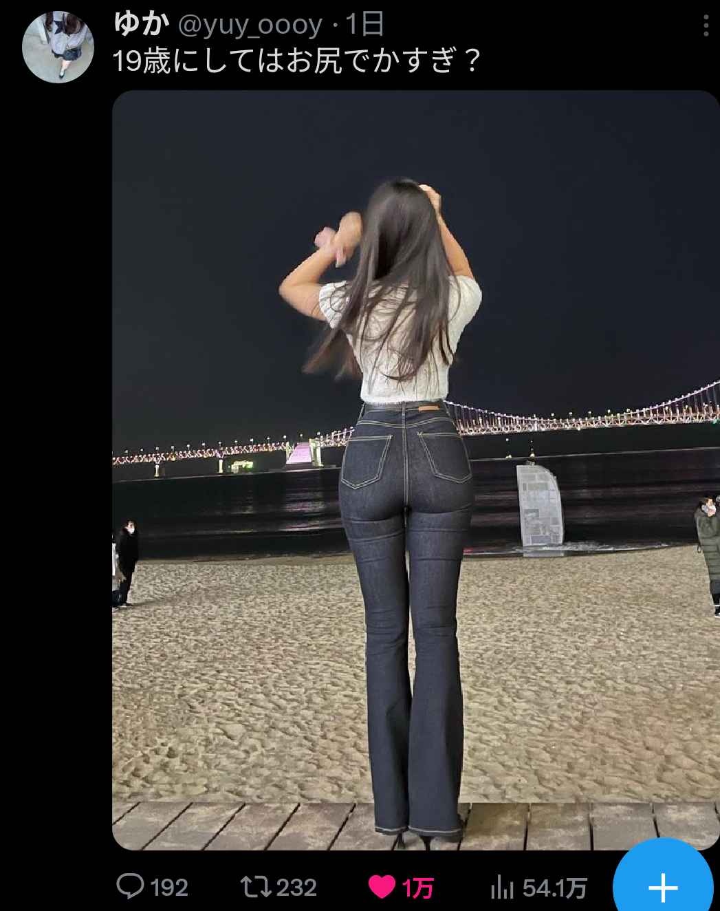【画像】まんさん「19歳の私の尻デカくて草」1万いいべ