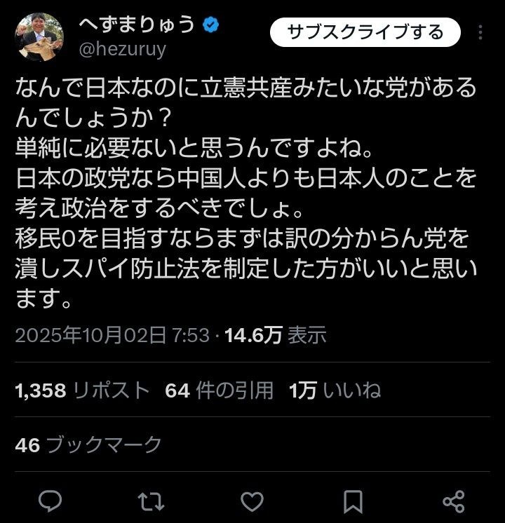 エッヂでもよく「立憲共産ガー」みたいな事言ってるやつおるけどへずまみたいな知的レベルの奴らなんやろな