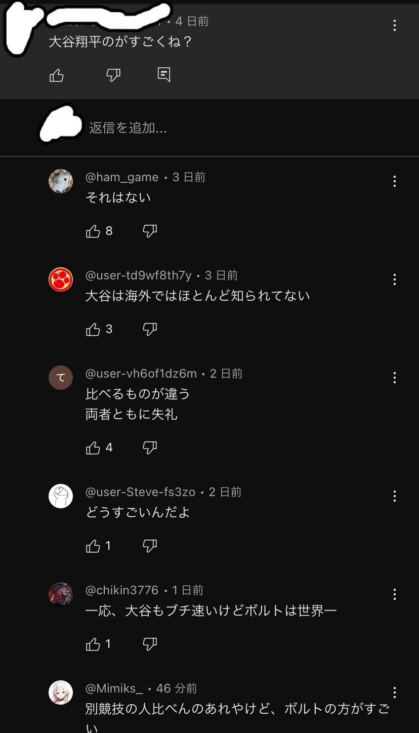 YouTubeコメ民さん「ウサインボルトより大谷翔平のがすごくね?」←批判が殺到してしまう… www www www www www www