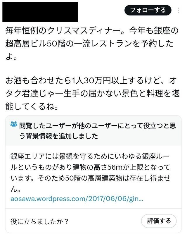 あと高層ビルに最高級レストランはほとんど入ってない - 126 名前:ここからは表現の自由でイカせていただきます 投稿日時:2025/10/08(水) 13:14:23.992 ID:y69iwGaDI