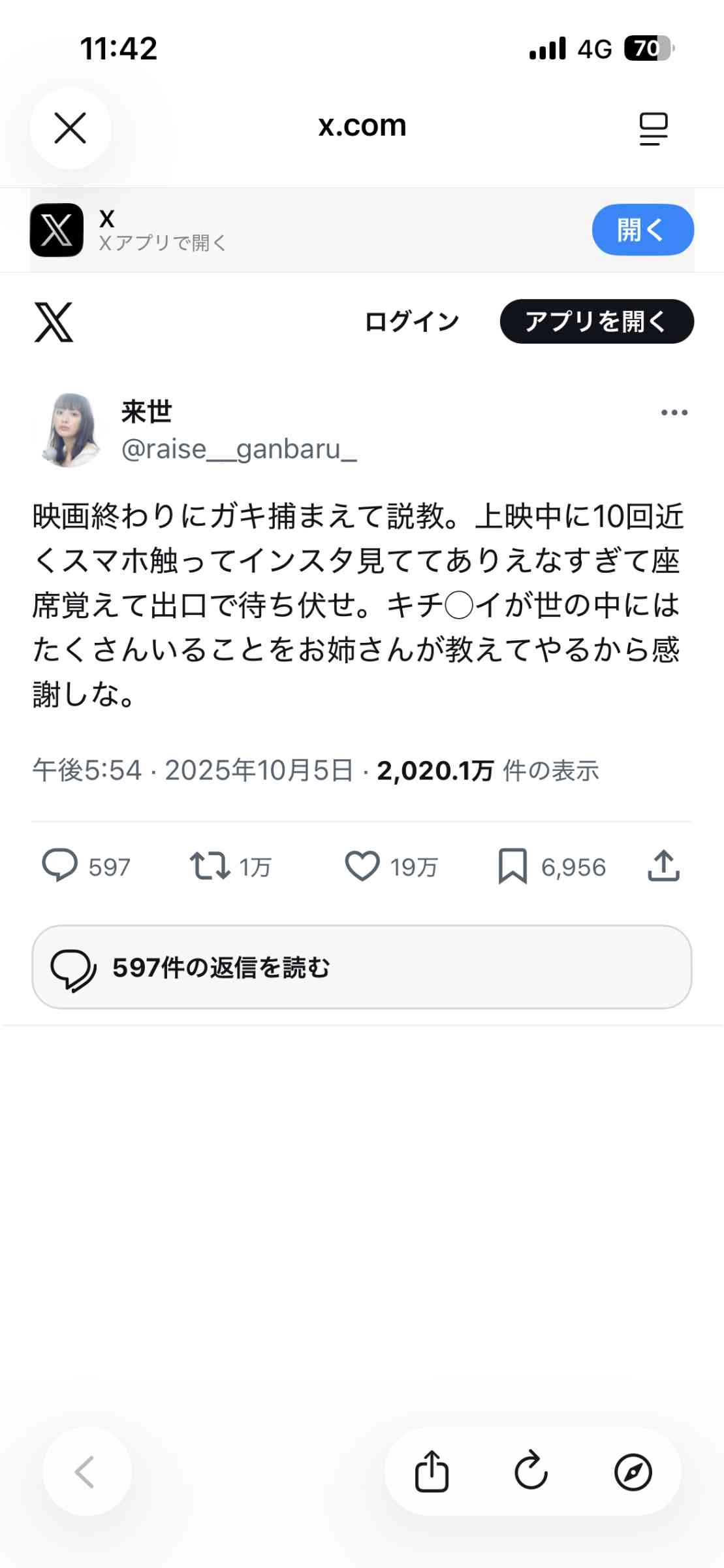 これがやばいおっさんだったら最悪殴られてるし - 35 名前:ここからは表現の自由でイカせていただきます 投稿日時:2025/10/11(土) 11:49:48.742 ID:zmJE.ursN