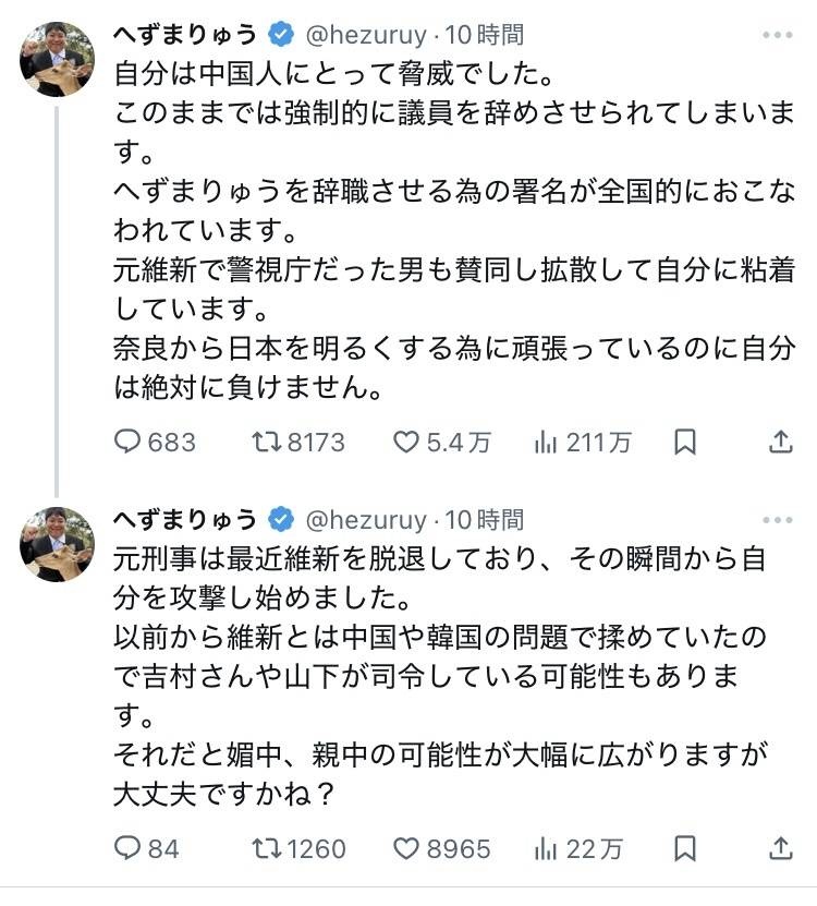 愛国へずま議員「僕の鹿さんパトロールが中国共産党に大打撃を与えている!!!」共産党壊滅へwww
