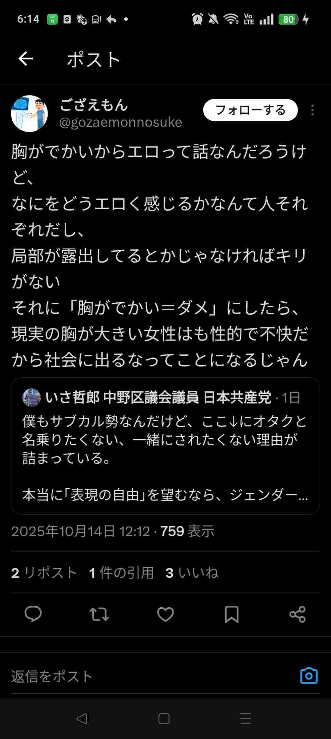 Xで直接反論したら論破されるからビビってエッヂに晒した結果ここでも論破されてるやんw - 28 名前:ここからは表現の自由でイカせていただきます 投稿日時:2025/10/15(水) 06:31:35.762 ID:43/JpgRJZ