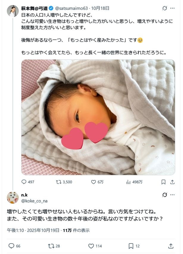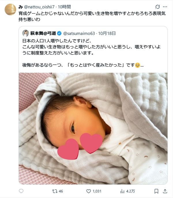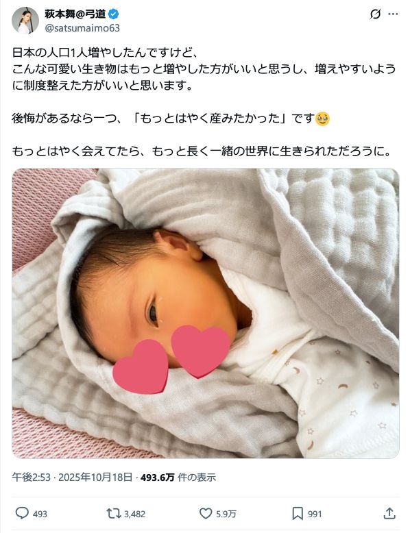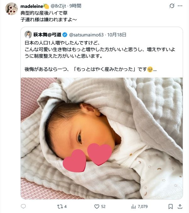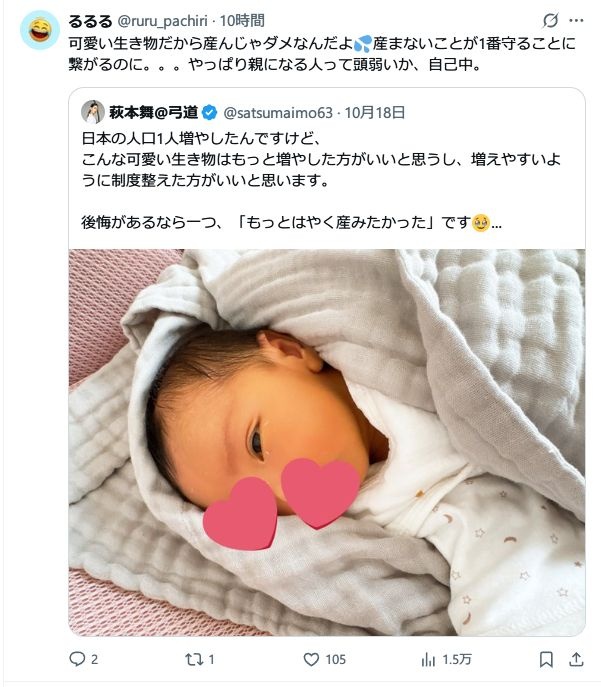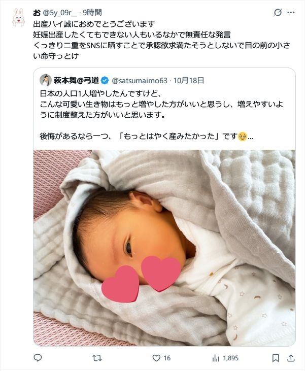 女性「日本の人口1人増やしました。こんなに可愛いならもっと早く産みたかった」 もちろん炎上する
