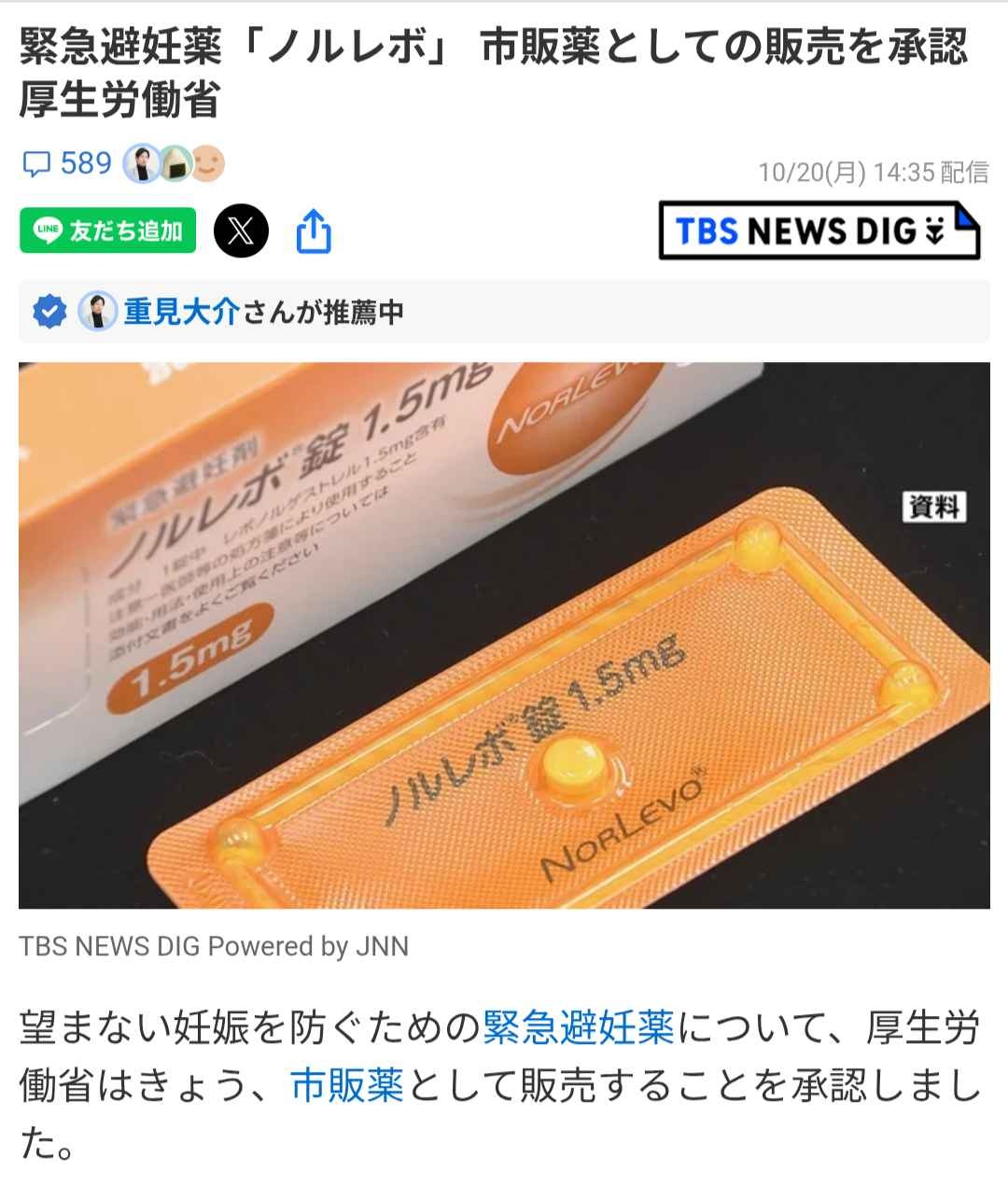 緊急避妊薬、市販でお手軽に手に入るように承認