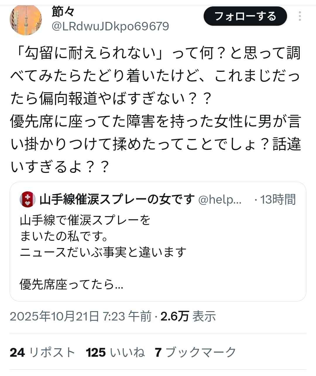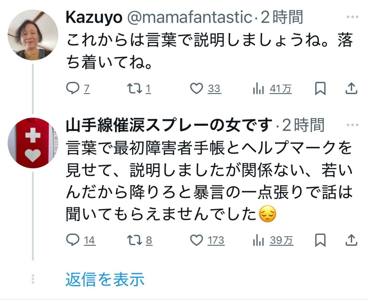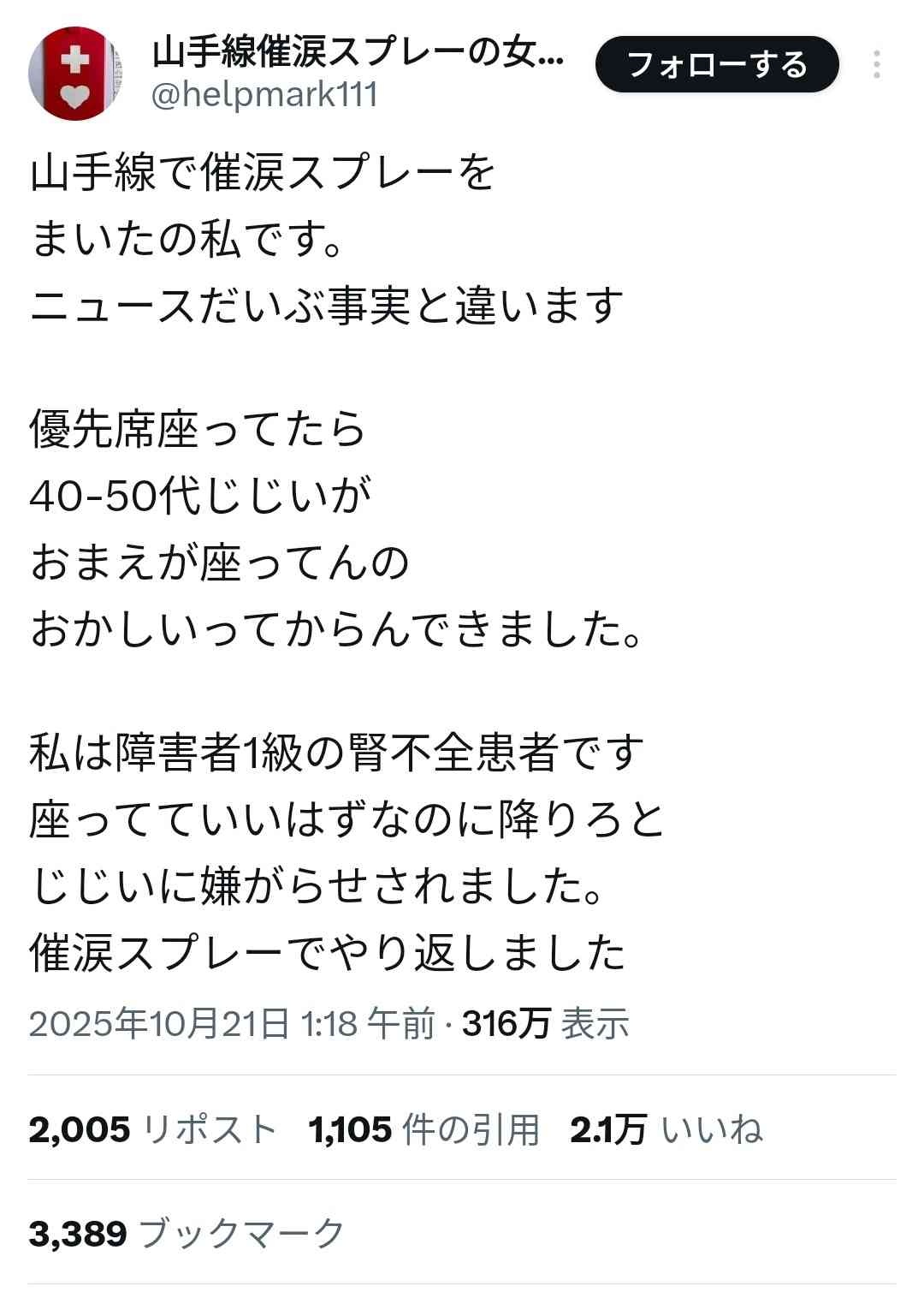 - 公共交通の電車内で催涙スプレーを使用するとか障害あるんじゃないのこの人