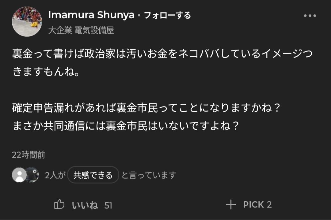 - 自民サポーターついに裏金擁護まがいのことまでし始めたのか