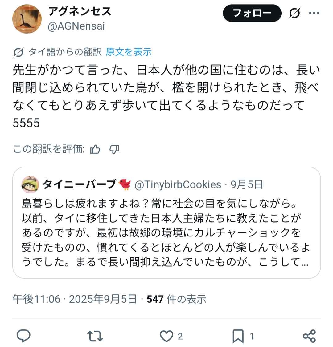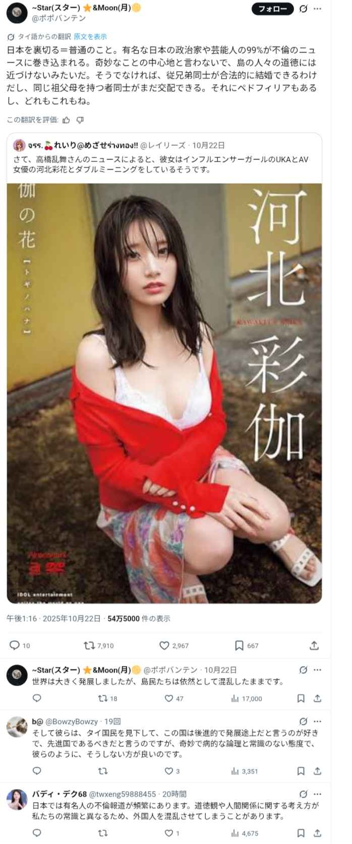 その手の輩はタイ人を見下してそうやね - 34 名前:ここからは表現の自由でイカせていただきます 投稿日時:2025/10/24(金) 11:07:55.107 ID:mejyrUj7B