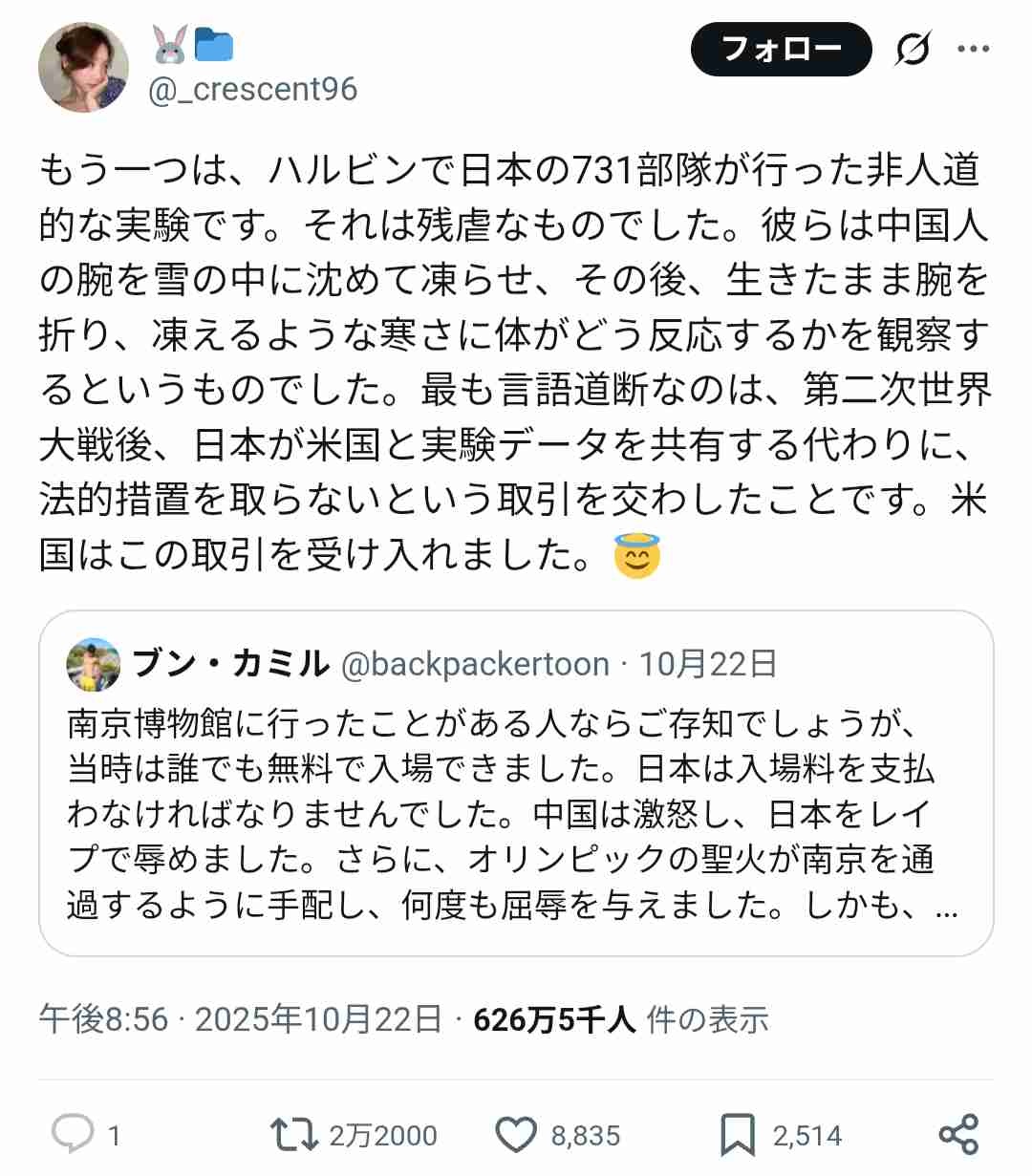 そりゃあ反日にもなるだろ - 37 名前:ここからは表現の自由でイカせていただきます 投稿日時:2025/10/24(金) 11:08:49.748 ID:mejyrUj7B