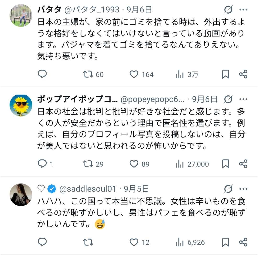 - 日本は家父長制だから不倫は当たり前で不倫しても問題にならない男尊女卑国って批判もよく見かけるわ