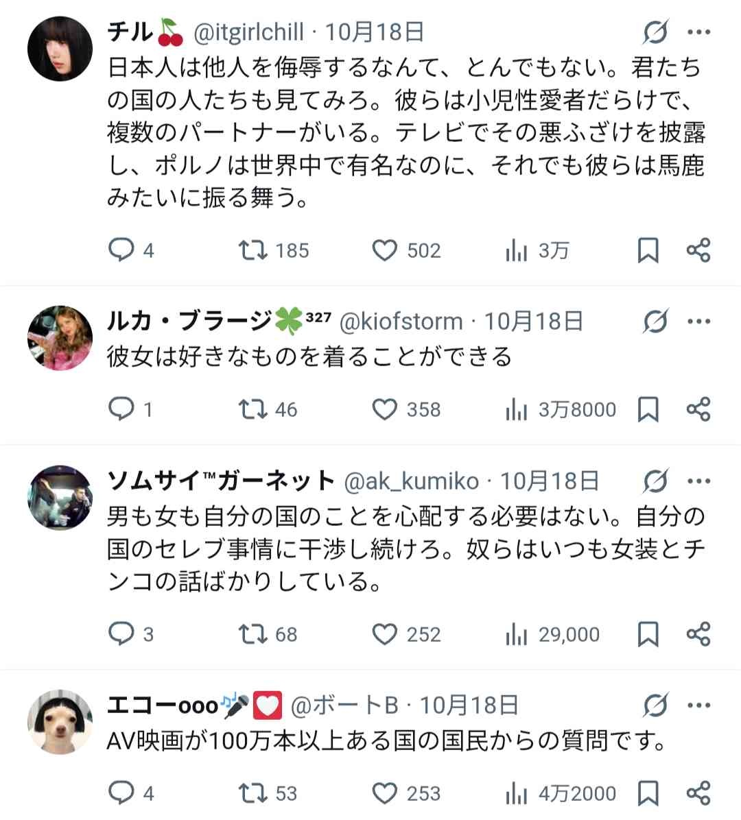 ジャップと同じやん - 46 名前:ここからは表現の自由でイカせていただきます 投稿日時:2025/10/24(金) 11:12:10.169 ID:mejyrUj7B