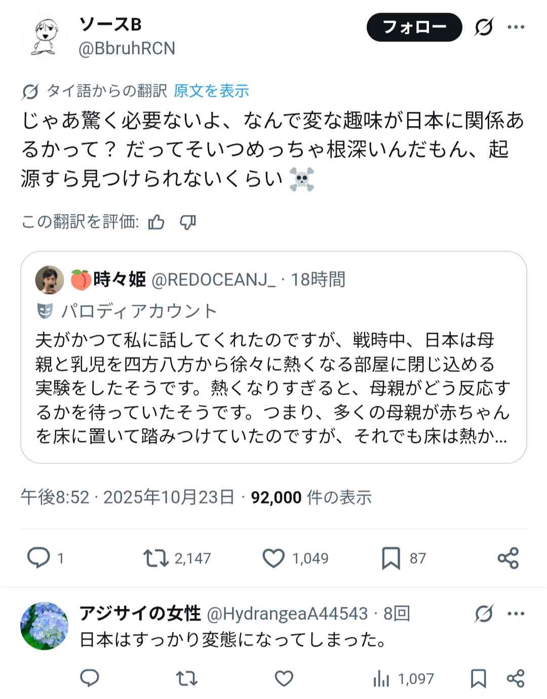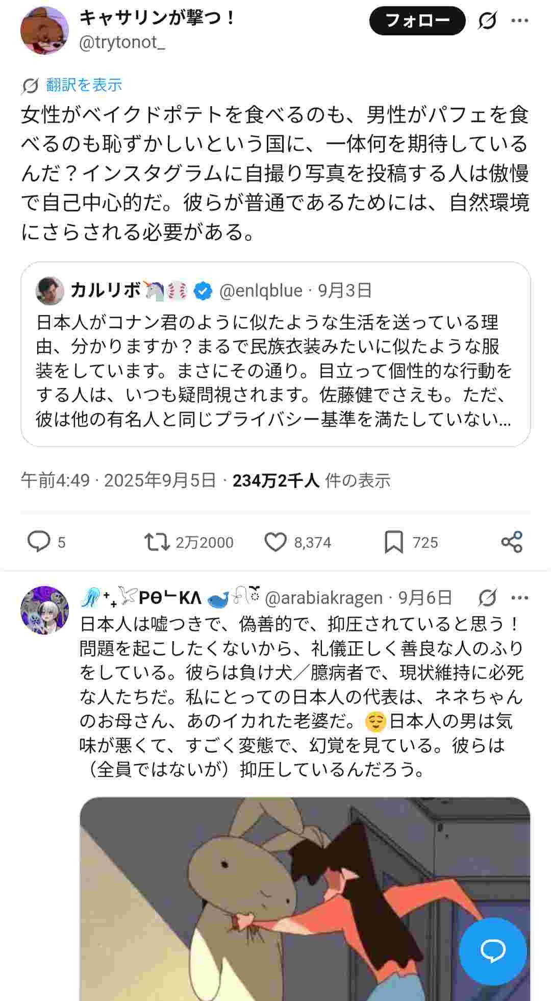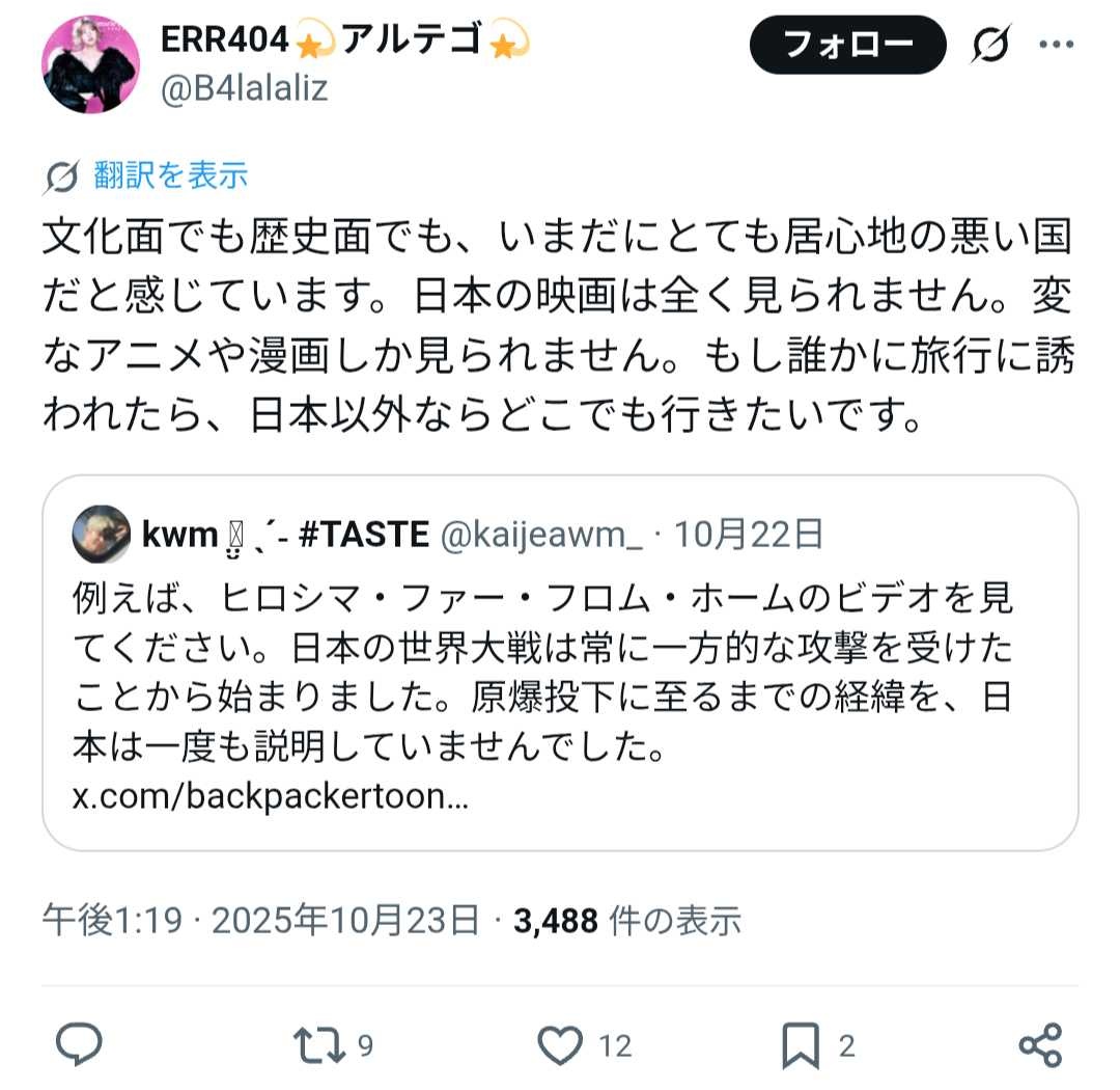 元からそんなに日本好きじゃないから大丈夫や - 36 名前:ここからは表現の自由でイカせていただきます 投稿日時:2025/10/24(金) 11:08:18.879 ID:mejyrUj7B