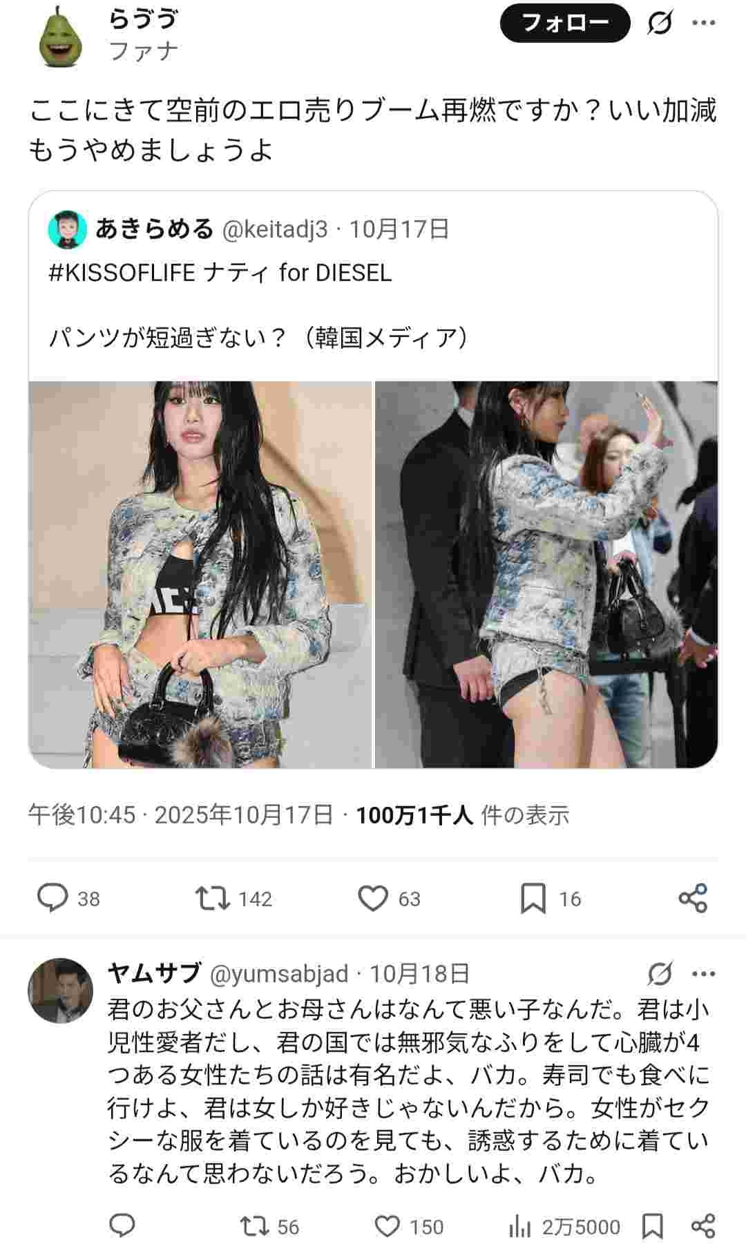 - 41 名前:ここからは表現の自由でイカせていただきます 投稿日時:2025/10/24(金) 11:10:26.884 ID:vXEKrGw/5
