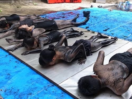 【画像】スクール水着の女子小学生が全身墨まみれで身体を押し付ける、児ポ顔負け