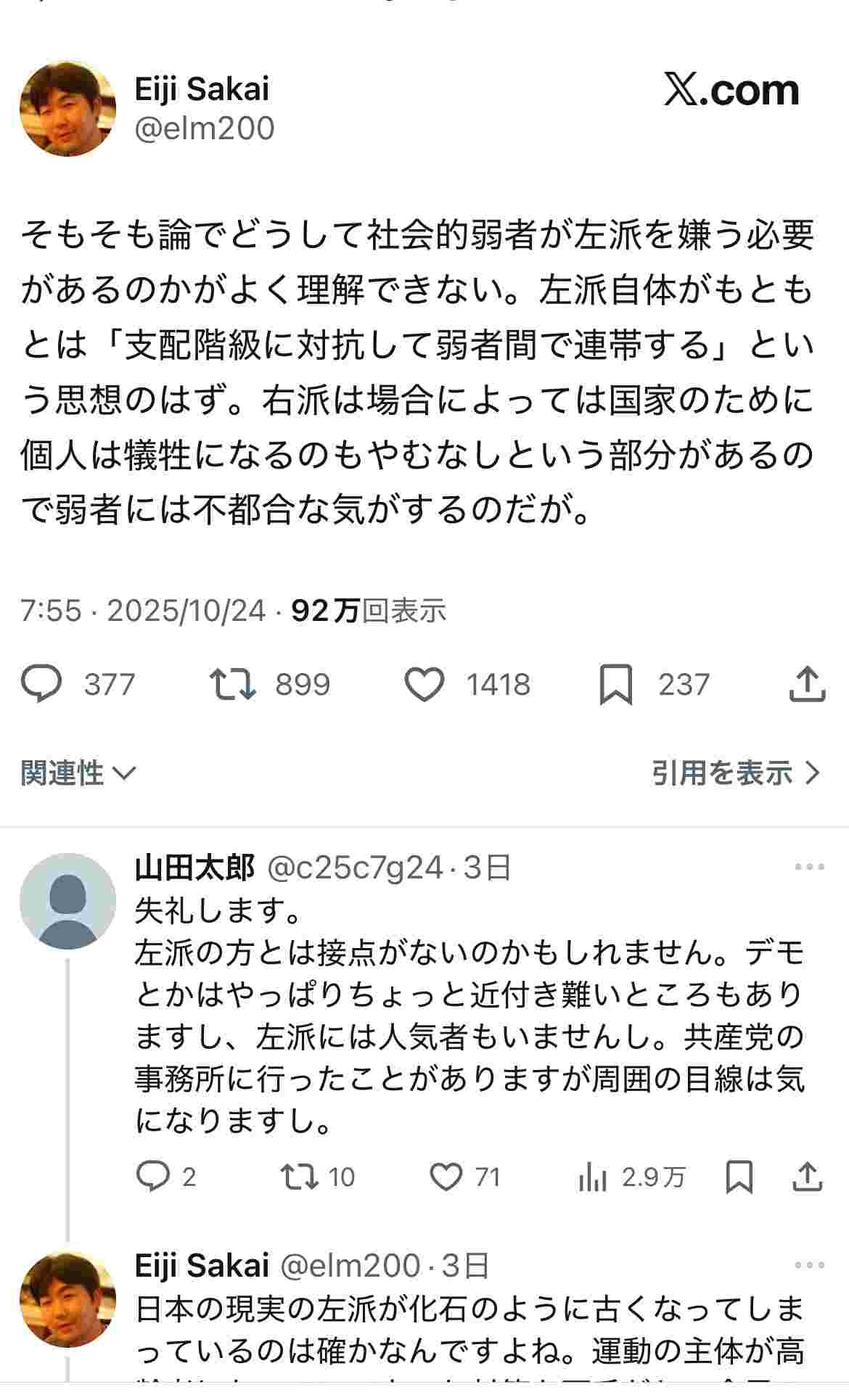今の左派はそれをしないからアカン - 11 名前:ここからは表現の自由でイカせていただきます 投稿日時:2025/10/27(月) 15:47:07.410 ID:XiJujwkKl