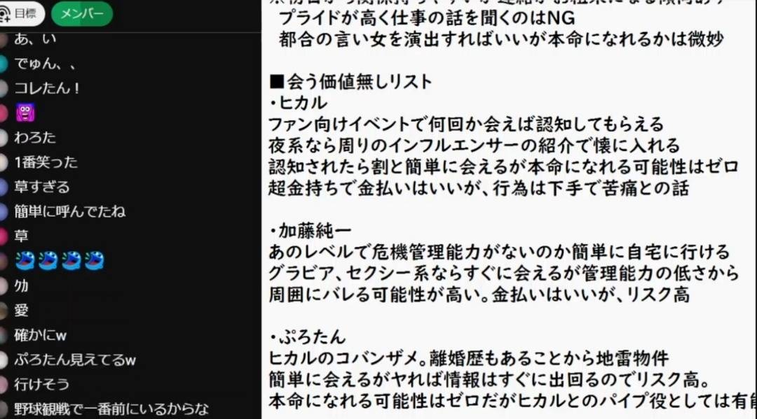コレコレの生配信でキャバ嬢が界隈の内情を暴露「ヒカルは合う価値なし、簡単に会えて金払いはいいが行為が下手くそ」