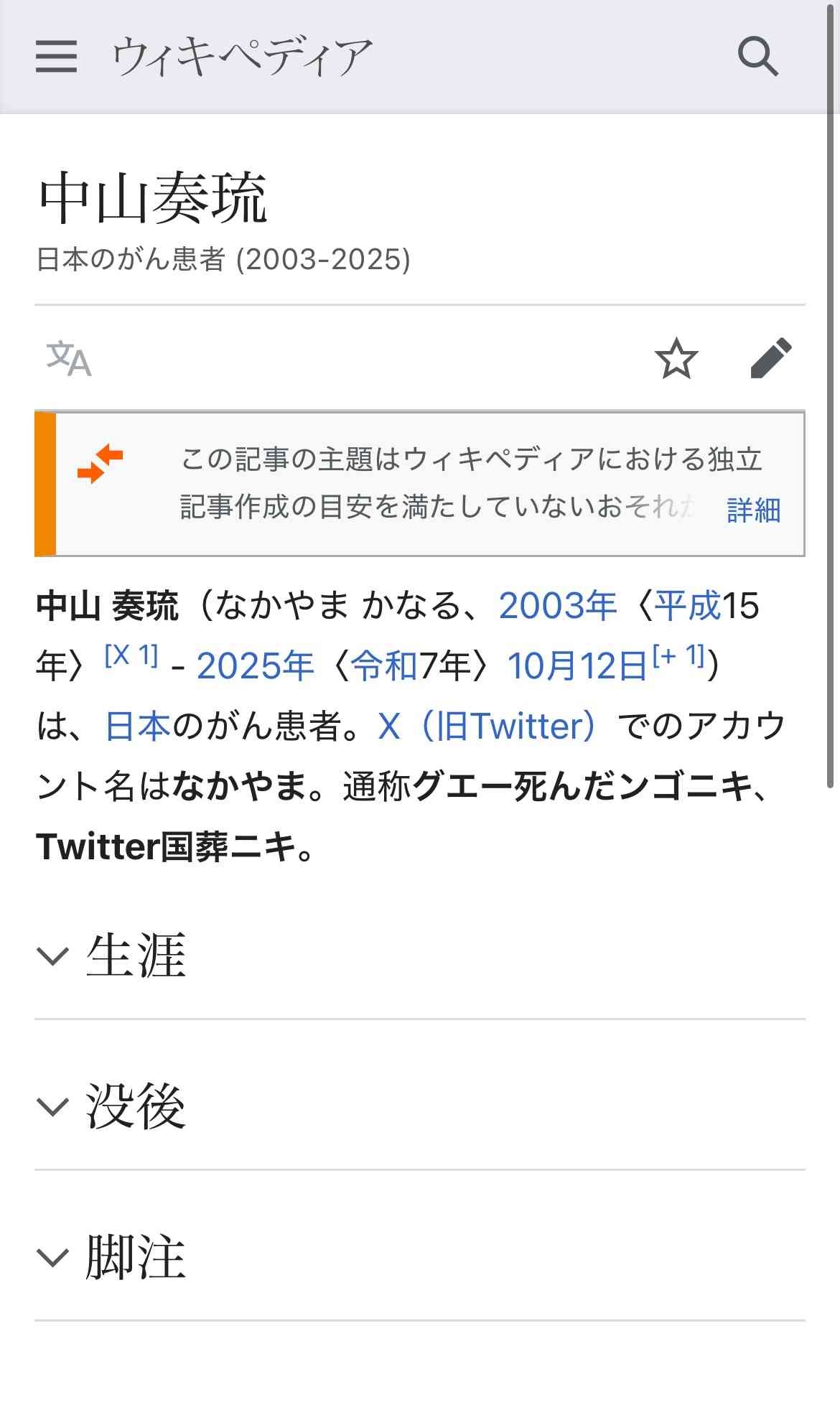 まぁどうせWikipediaやし常駐してるおっさんに記事消されるやろ - 24 名前:ここからは表現の自由でイカせていただきます 投稿日時:2025/10/28(火) 16:23:40.078 ID:IeCDgXaoX
