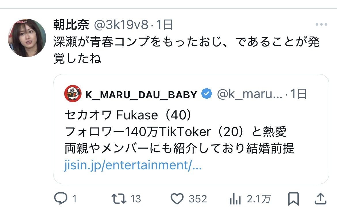 - どうせすぐ破局おばさん「どうせすぐ破局😂😂😂」