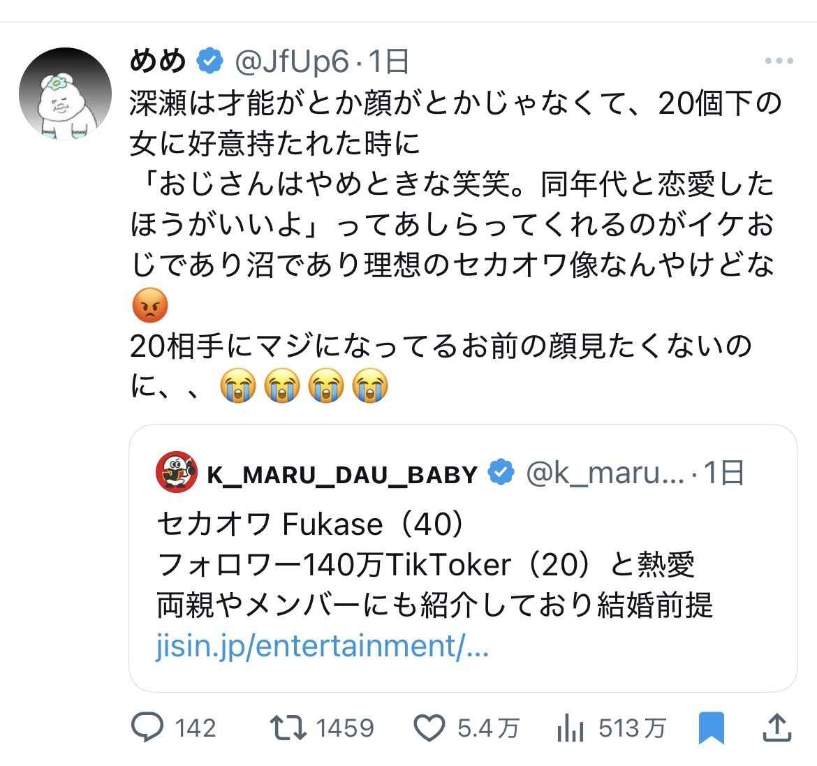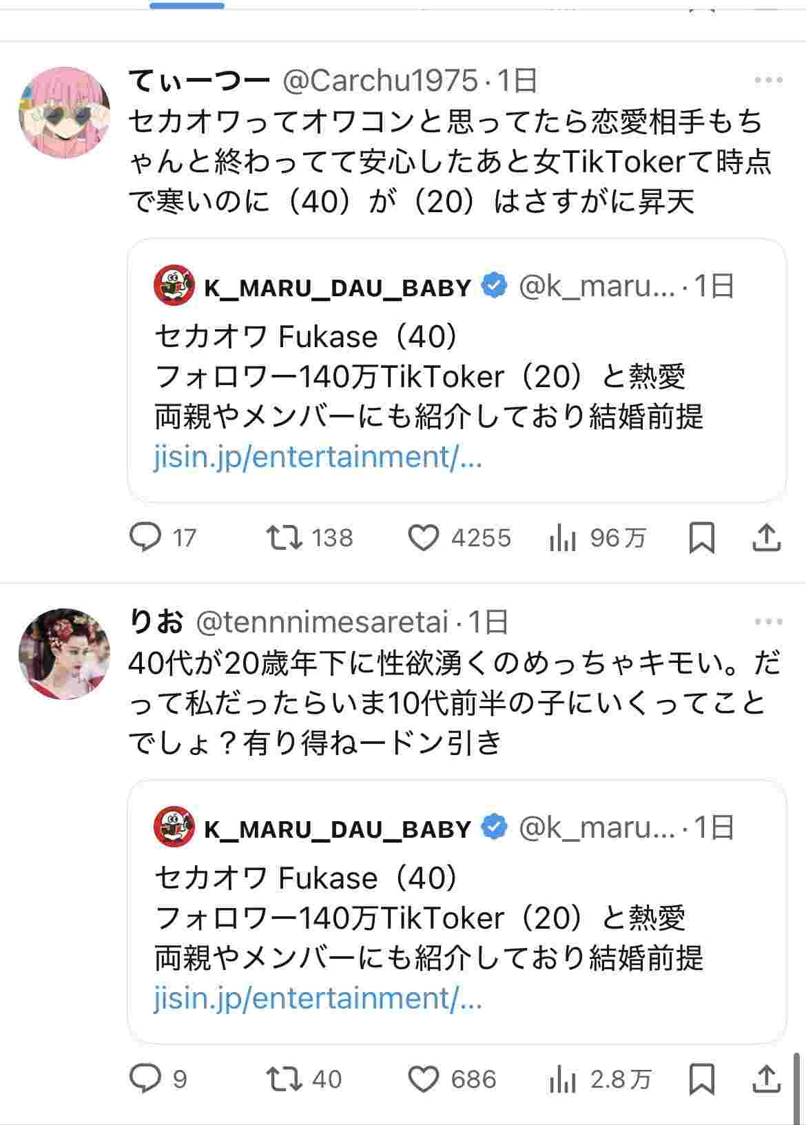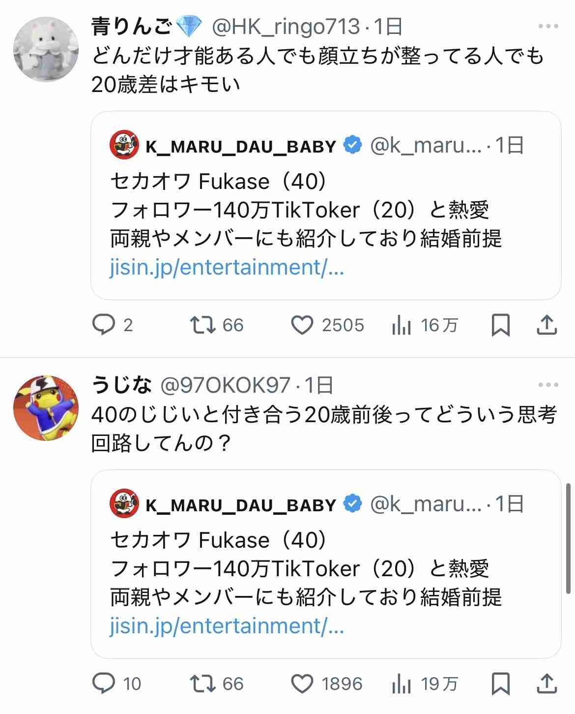 ツイッター女性、大合唱「40代男と20代女が結婚するのキモい!キモいキモいキモいキモいキモい!!💢」