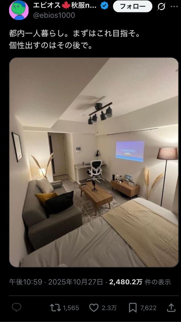 【画像】X女性「こんな風に、東京都民が狭い家で部屋を一生懸命オシャレにしてるの、見てて痛々しい」炎上www