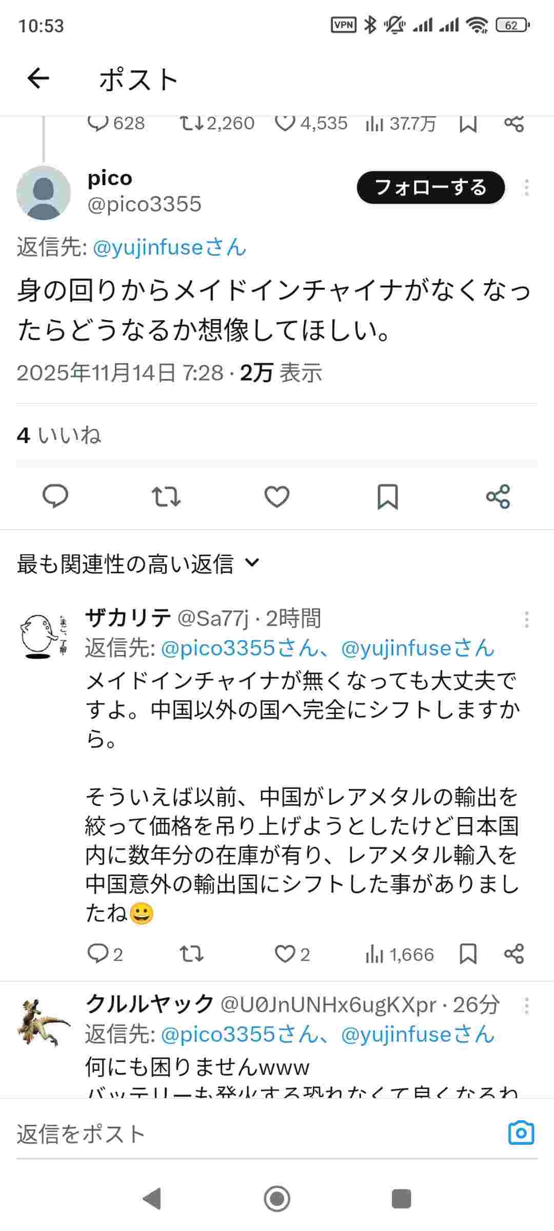 - 中国製品無くなっても大丈夫とか本気で言ってんのかな?