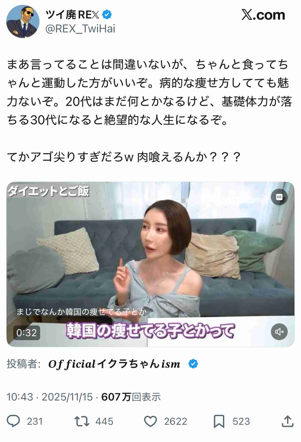 32 名前:ここからは表現の自由でイカせていただきます 投稿日時:2025/11/16(日) 08:22:48.623 ID:SnQIPyfO0