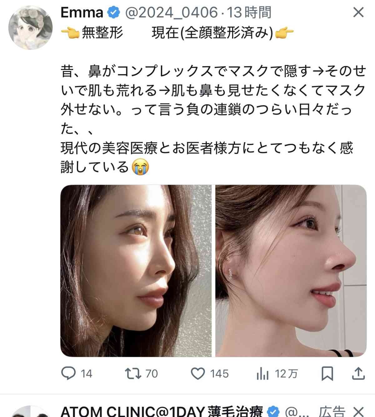 整形前ものごっつ完璧な鼻やない?