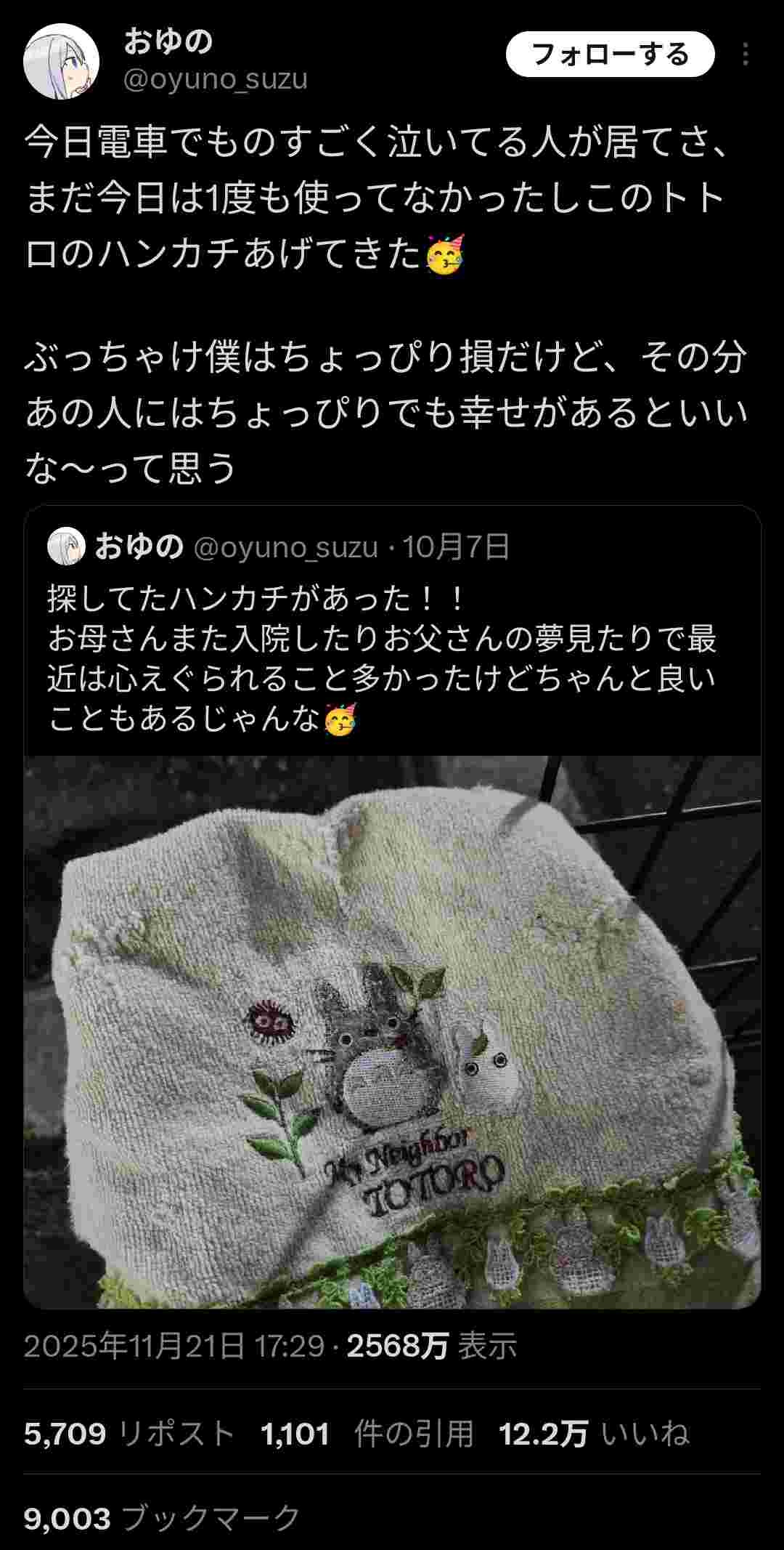 女さん電車で大泣き→イケメンがハンカチくれる→Xでエゴサしイケメンに彼女がいると判明→イケメンを誹謗中傷しまくるwww