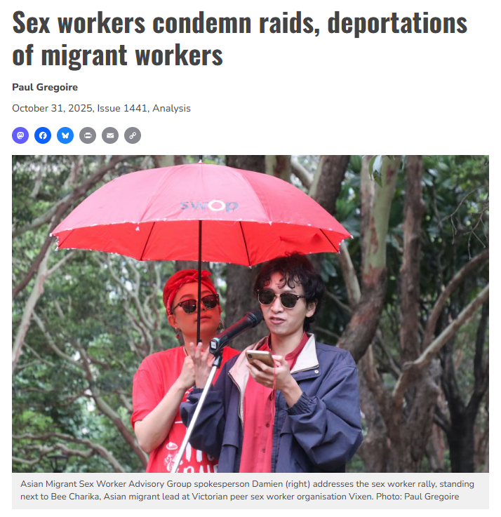 https://www.greenleft.org.au/2025/1441/analysis/sex-workers-condemn-raids-deportations-migrant-workers - 4 名前:ここからは表現の自由でイカせていただきます 投稿日時:2025/11/25(火) 13:18:59.642 ID:k3AqR9fSG