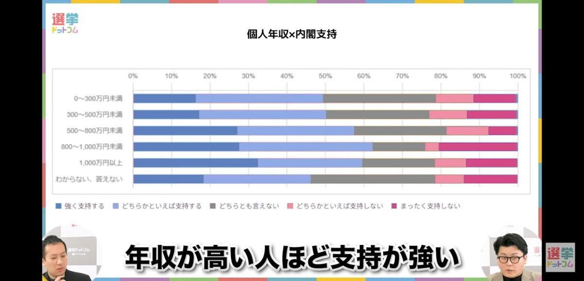 - 不支持も年収高い方が多いやん